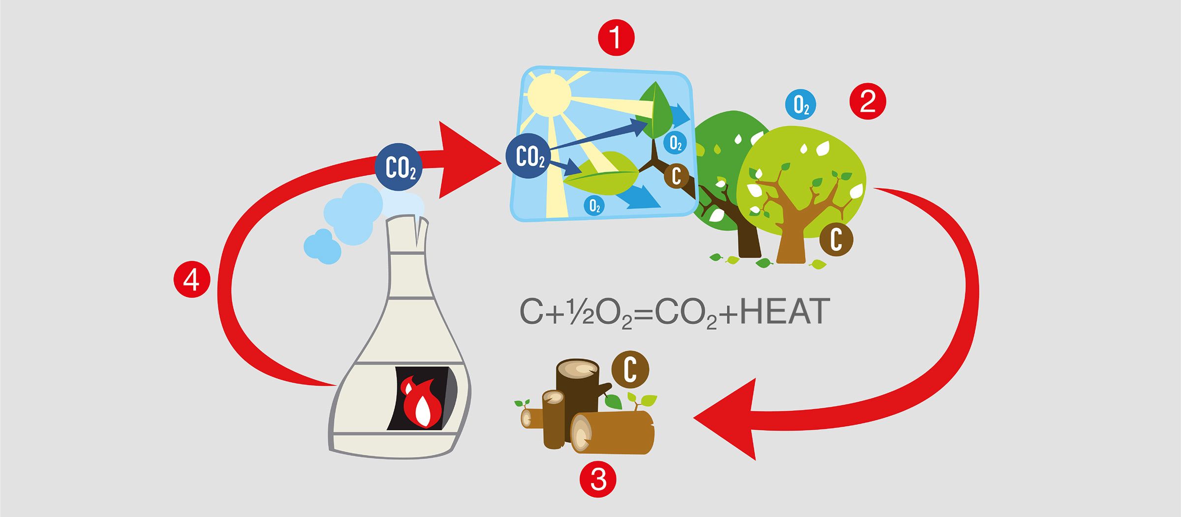 When wood is burnt in one of our fireboxes, the carbon contained in it combines with oxygen and, thanks to our dual combustion system, the same quantity of carbon dioxide that the tree subtracted from the atmosphere to produce the actual wood being burnt is released.
